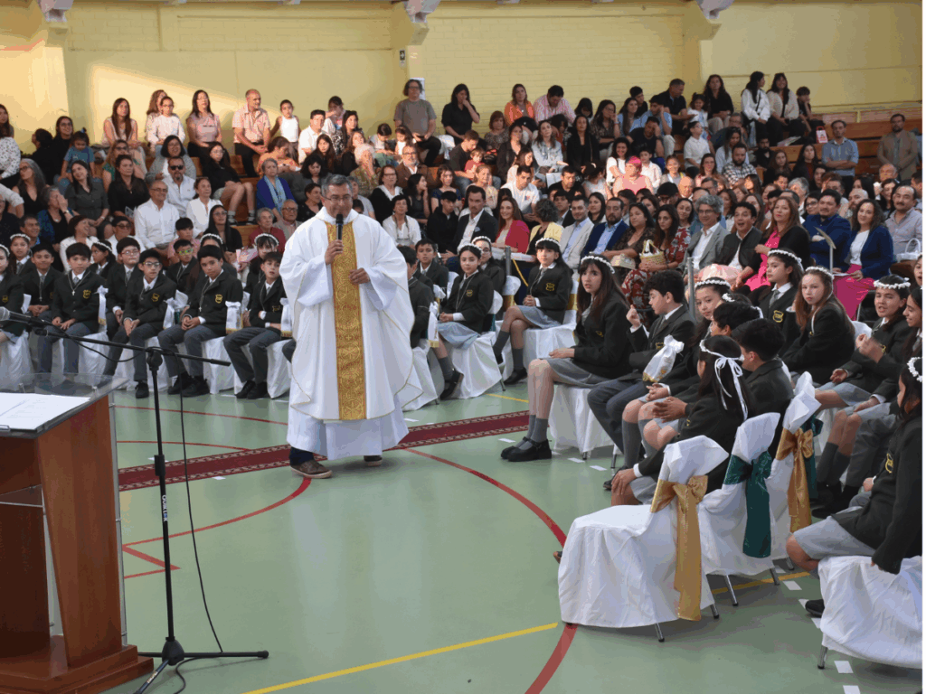 La celebración, realizada por el sacerdote, P. Jaime Muñoz, contó con la presencia de autoridades del colegio, profesores, catequistas, una gran cantidad de familiares y amigos que acompañaron a los niños en este significativo momento, donde fortalecieron su vínculo con Jesús.