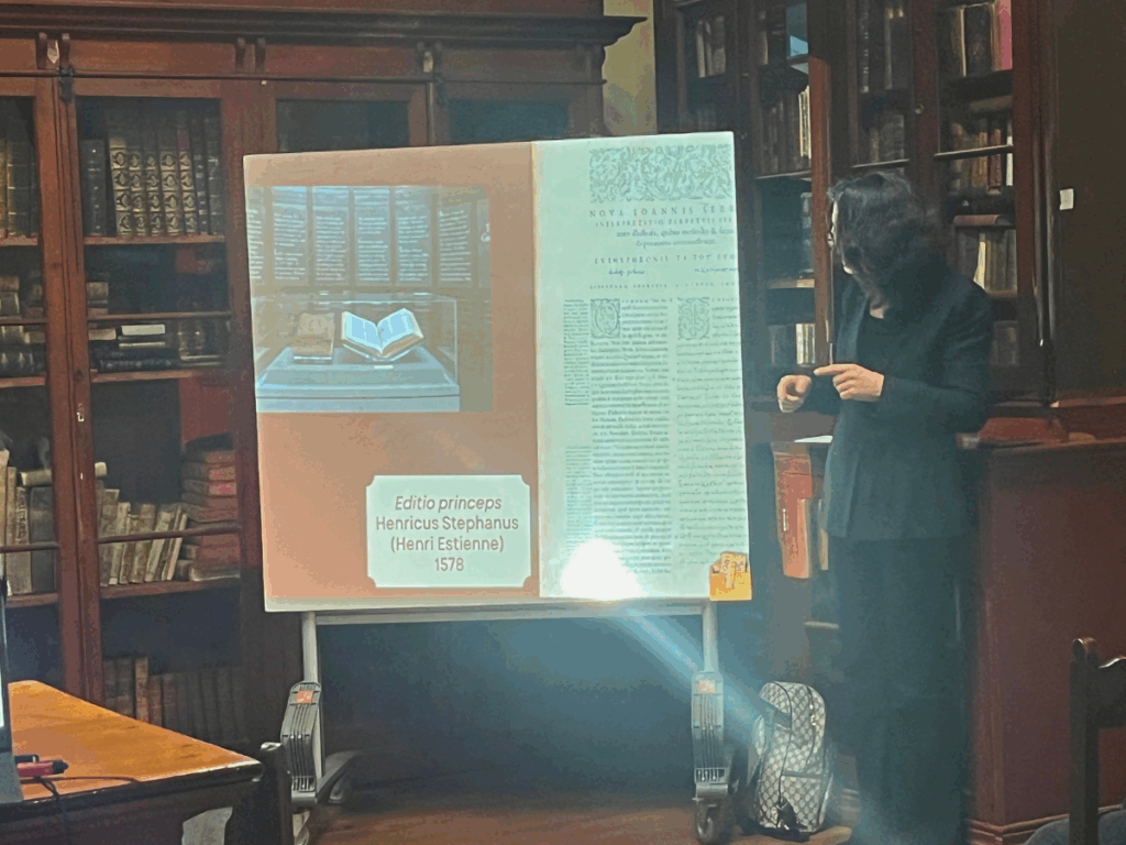 La Dra. Squizzato destacó el gran trabajo que hay detrás de un texto de esta naturaleza, ya que hay una labor invisible pero importantísima, no sólo de los especialistas en filología, sino de quienes transcribieron en papiros una y otra vez los textos de Platón para mantener sus ideas a salvo del tiempo y el olvido.