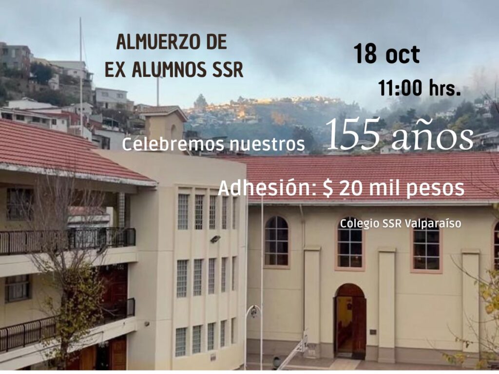 Como ya es tradición, los ex alumnos se reunirán para celebrar el aniversario n° 155 del Colegio con un tradicional almuerzo el próximo sábado 18 de octubre, a las 11.00 hrs, en el ciclo medio del colegio de Valparaíso, ocasión donde se distinguirá a la generación que cumple los 50 años de egreso.