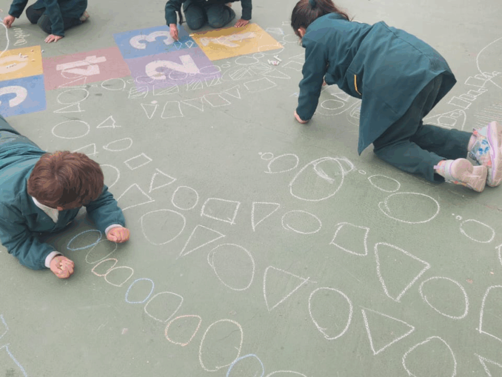 En el Ciclo Básico de nuestra sede Valparaíso, los estudiantes de 2º Básico exploraron figuras 2D y 3D, secuencias y patrones en el patio, aprendiendo de manera activa, divertida y concreta.