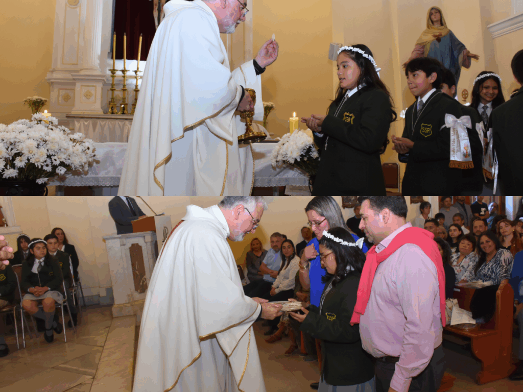 La Eucaristía, celebrada por nuestro capellán Padre Erwin Prieto, se vivió con un marcado sentido comunitario. Durante la misa, los niños participaron activamente en las ofrendas, las lecturas y los cantos, dando testimonio de la fe que han cultivado durante su preparación.