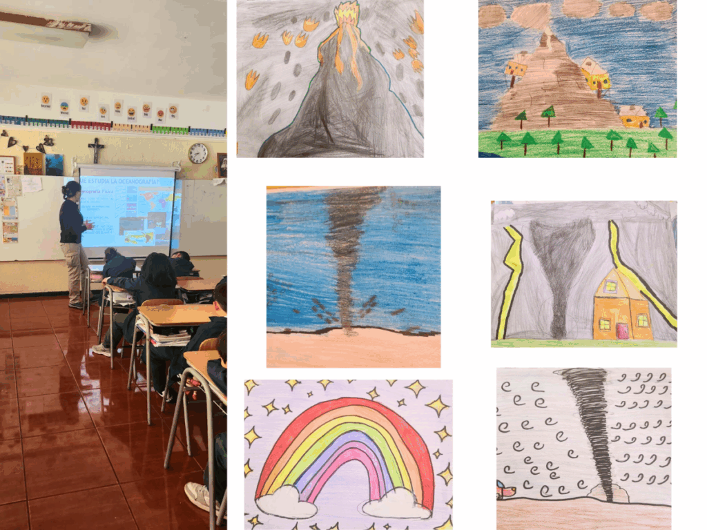 Durante la charla, los niños y niñas aprendieron sobre los fenómenos naturales marinos que ocurren en nuestro planeta: tsunamis, trombas marinas, huracanes, mareas rojas y remolinos.